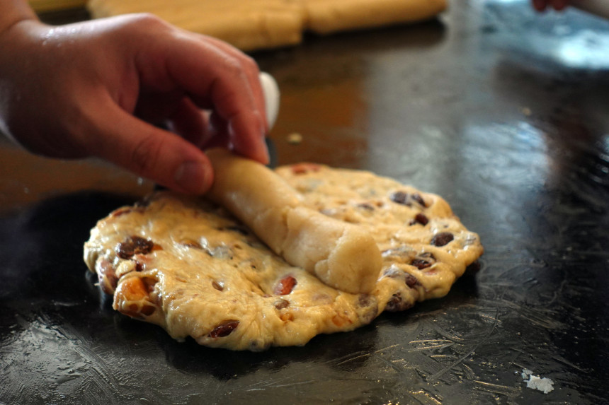 슈톨렌은 럼에 절인 과일과 달콤한 마지팬 (견과 가루와 설탕으로 만든 반죽)이 들어가는데,
